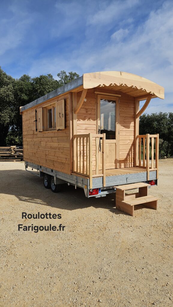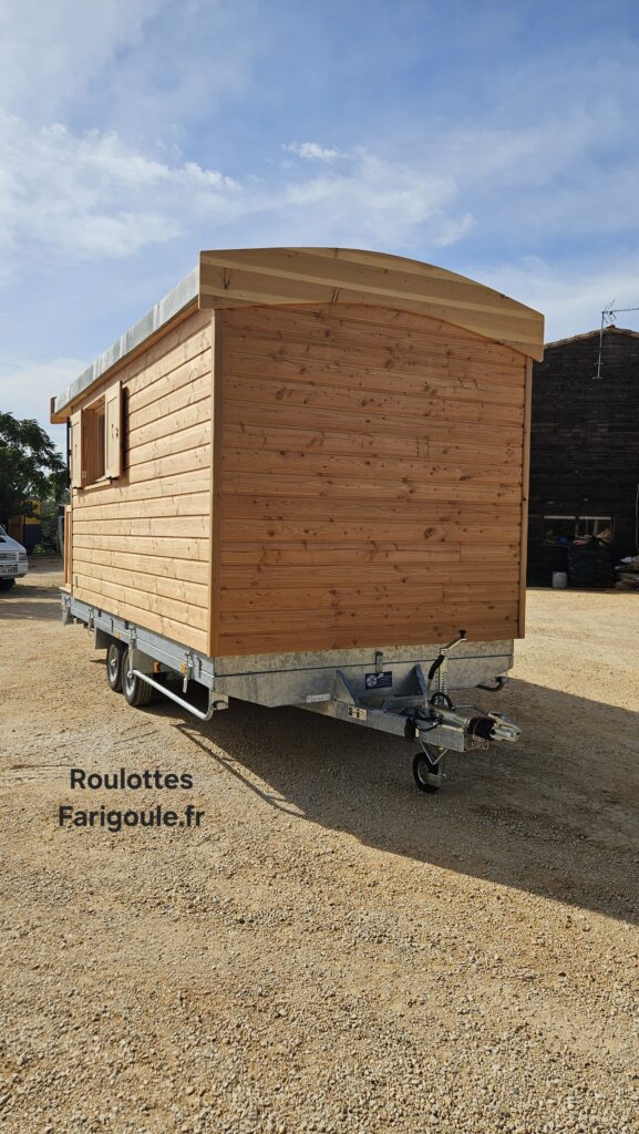 Désormais nous pouvons également vous proposer une version Nomade. La roulotte sera construite sur un cadre métallique fixé comme un chargement sur une remorque homologué route.