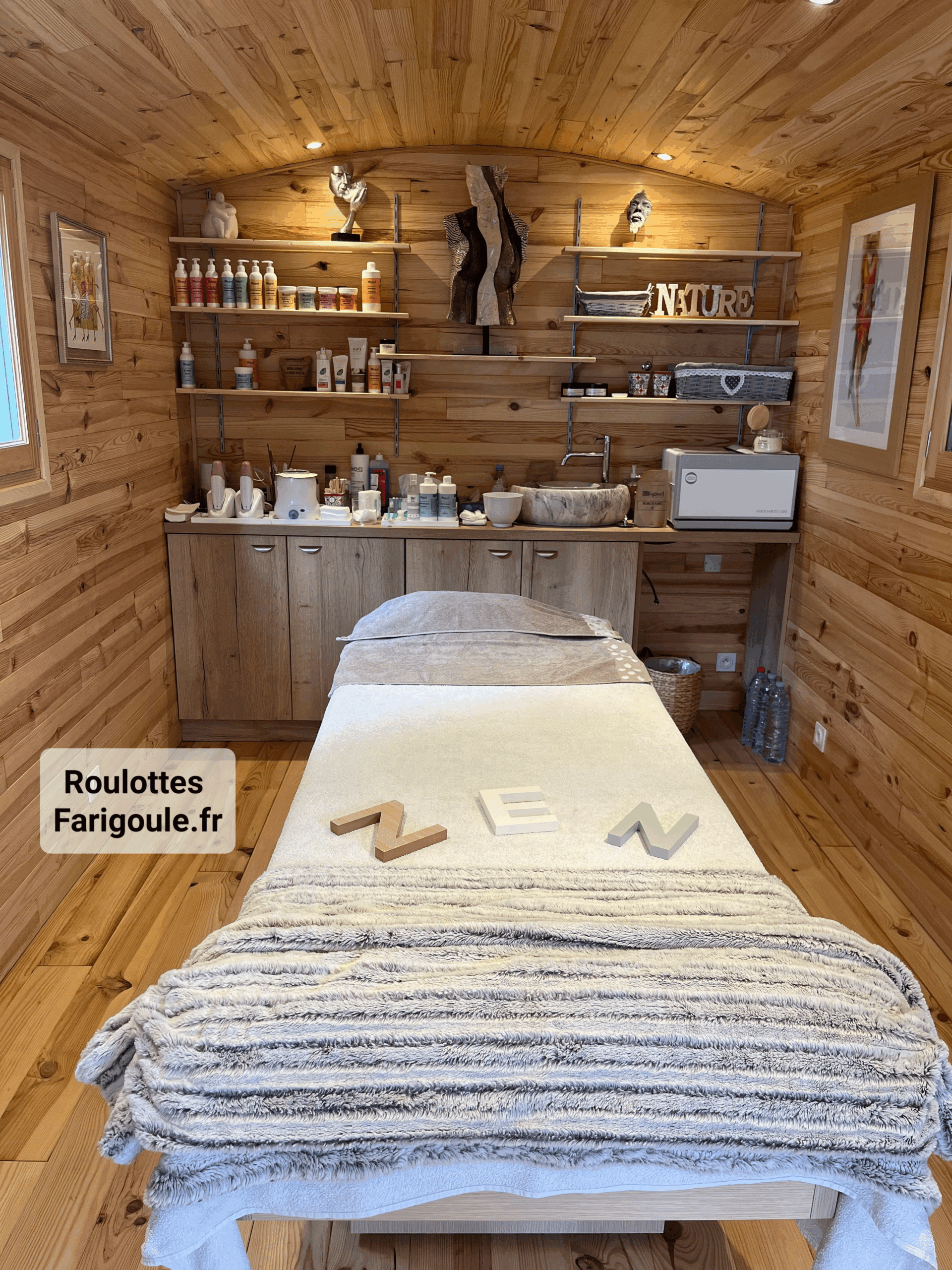 Rien qu’en pénétrant à l’intérieur vous comprendrez… et vos clients ressentirons la même chose, du bien être, de la confiance, de la chaleur, comme si ils rentraient dans un petit cocon sécurisé. Alors, ils n’auront aucun mal à se laisser aller, portés par vos soins, pour enfin lâcher prise le temps de ce formidable moment de bien être qu’ils sont venus chercher.